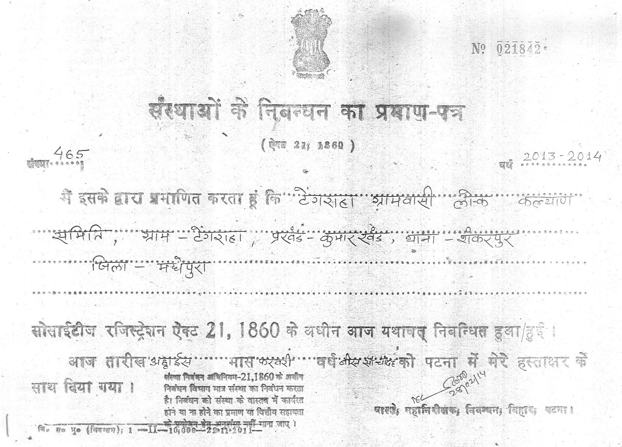 Tengraha Gramvasi Lok-Kalyan Samiti (TGLS) has its head office at Village – Tengraha, Block – Kumarkhand, Thana – Shankarpur, District – Madhepua, Bihar (India). The registered office of the society is presently located at Devaki Bhavan, Vill+Post – Tengraha, Block – Kumarkhanda, Via – Sinheshwar, District – Madhepura, Bihar, India, PIN – 852128. The area of operation of the TGLS will extend throughout the entire village which consists of both Tengraha East and Tengraha West of Mauza Sripur, Block – Kumarkhand. The area of operation includes socially and economically connected area of ward no 7 of Tengraha-Parihari Panchayat which lies in the east of village Hariraha, Block – Kumarkhand, District – Madhepura. The work of the society is to establish itself to be a specialized agency for social, education and economical development of the village. To act as an agency to bring upward Social and Educational Mobility and to create Scientific, Socialist, Secular and Democratic environment in the village to achieve Justice, Liberty, Equality and Fraternity for the people of the village by engaging the village community mentioned in the area of operation.